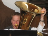 Musikschule 2. Posaune. 1993 wechselte er aufgrund von Personalmangel auf die B-Tuba, der er bis heute